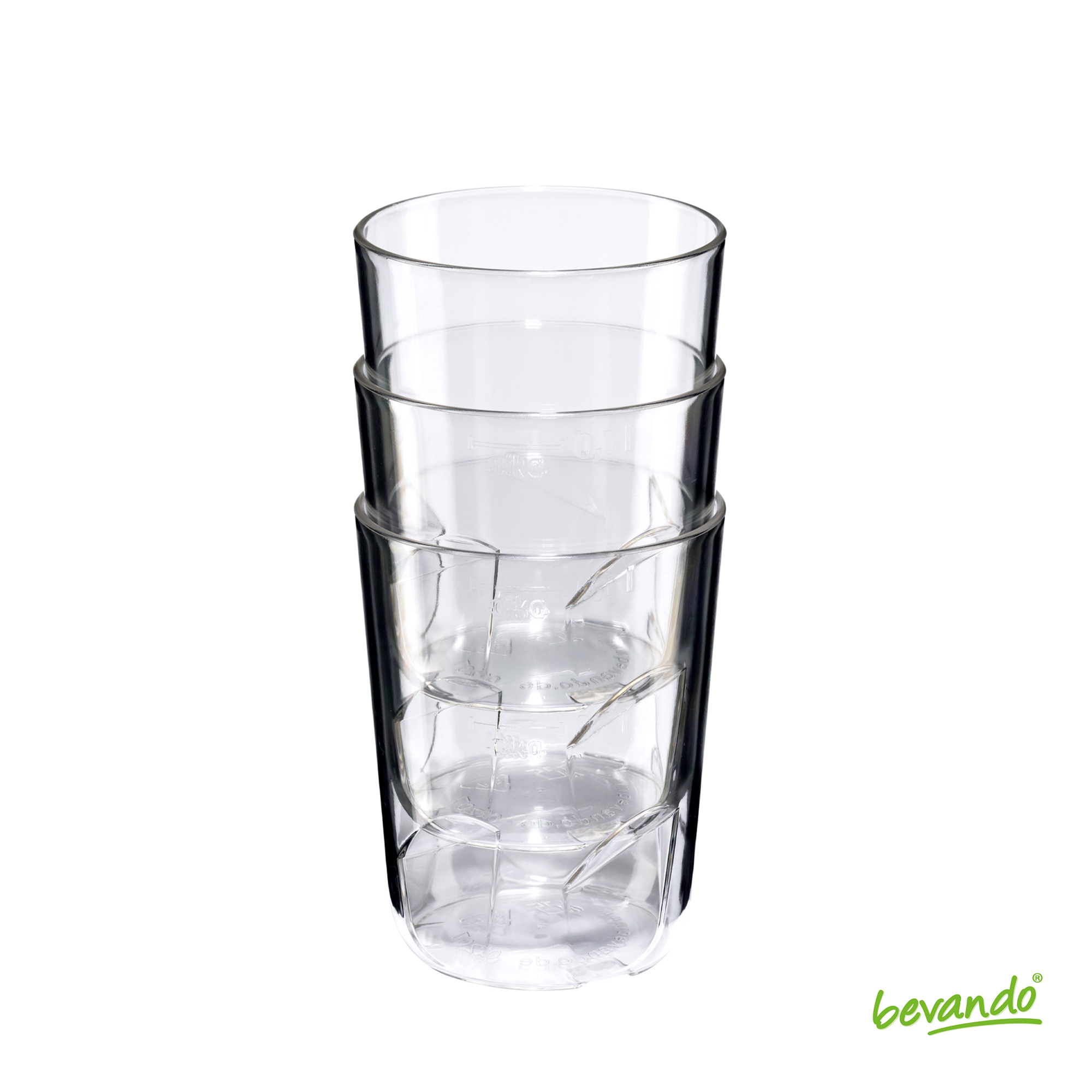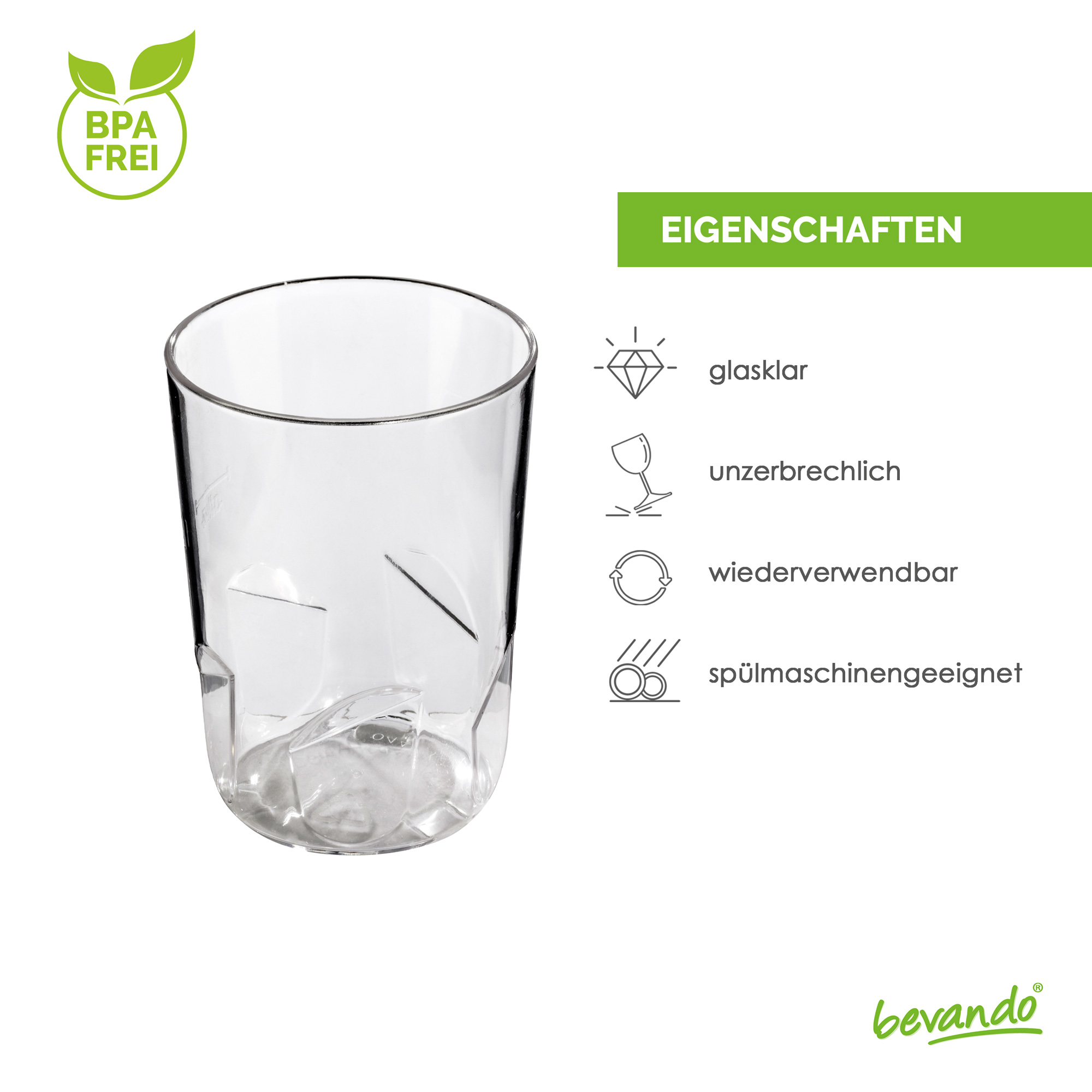 Die bevando Gläserreihe ist die intelligente Alternative zu billig anmutenden Plastikbechern, Einwegbechern, Mehrwegbechern und leicht zerbrechlichem Kristallglas.